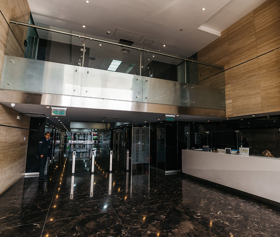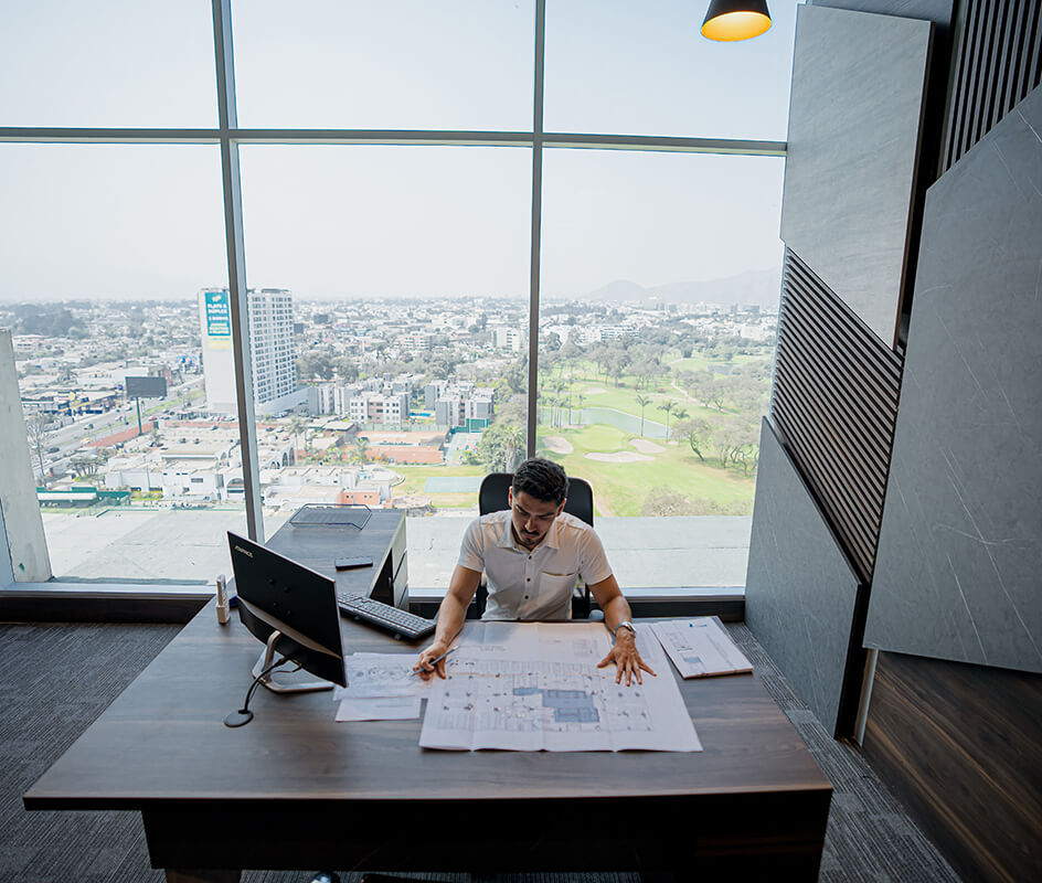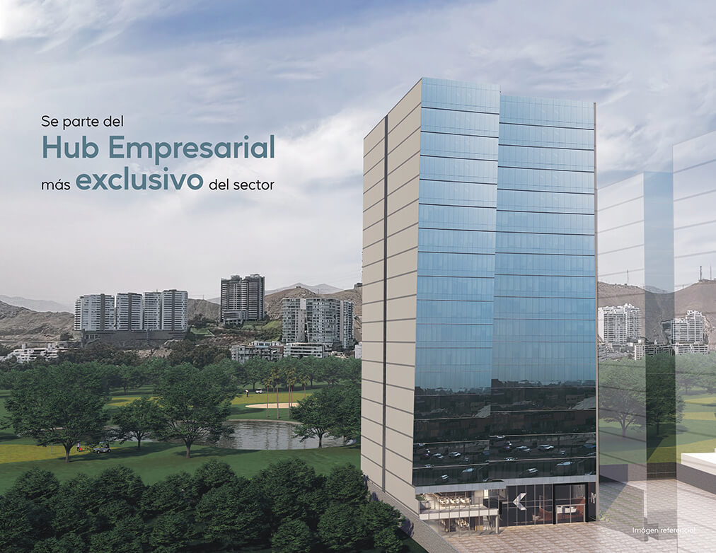 Nuestras torres de diseño vanguardista brindan una experiencia inigualable desde el primer momento. Con un elegante lobby de doble altura y pisos de mármol, cada detalle está pensado para ofrecer confort y exclusividad. Las oficinas, que disfrutan de impresionantes vistas al campo de golf y amplios espacios verdes están diseñadas para optimizar la productividad.